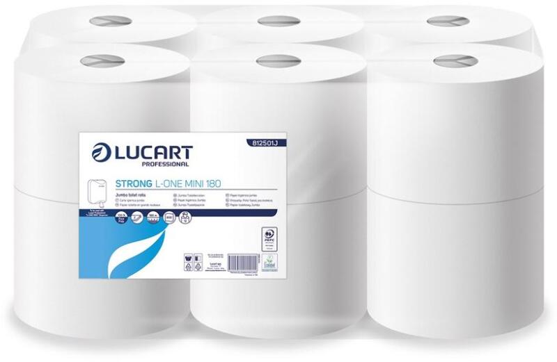 Lucart Toalettpapír 2 rétegű közületi átmérő: 18, 2 cm laponkénti adagolás 12 tek/csom Strong L-One Mini Lucart_812501J hófehér - suplix