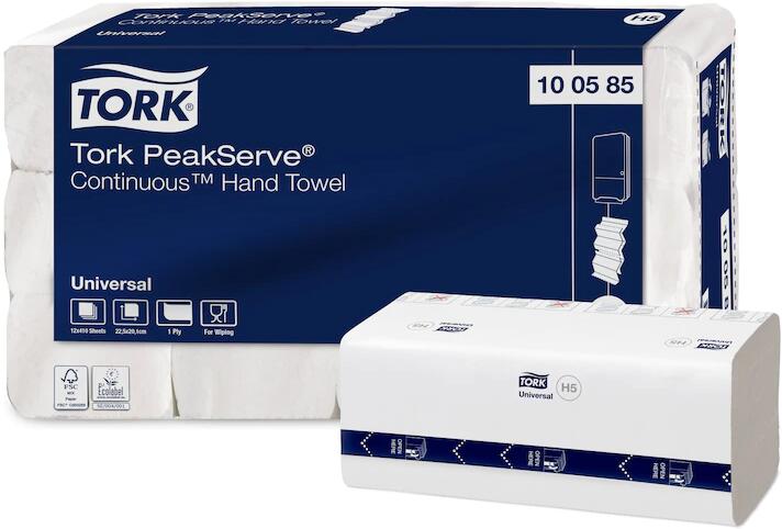 Kéztörlő 1 rétegű folyamatos adagolású 410 lap/csomag 12 csomag/karton 12 db/karton PeakServe® Tork_100585 fehér - TORK100585 - Papírtörlők -